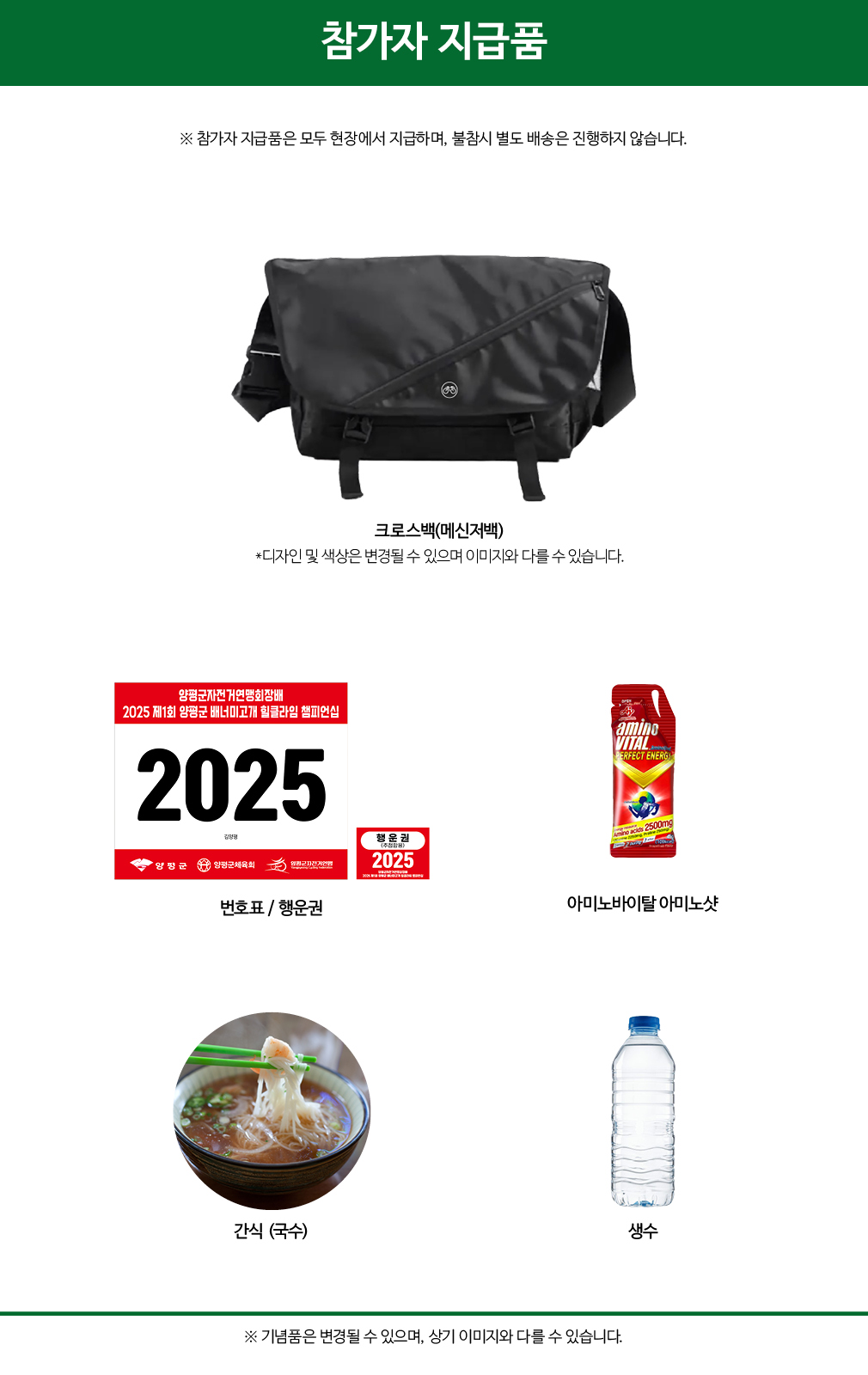 ※ 물은 선수에게만 지급되며, 참가자는 출발전 개인 휴대용 물통에 완충 하시고 출발 하시길 바랍니다.