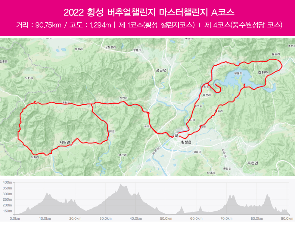 2022 횡성 버추얼 챌린지 행사장(출발지)는 4곳으로 모두 차량주차및 화장실 사용이 가능한 지역으로 선정하였습니다.