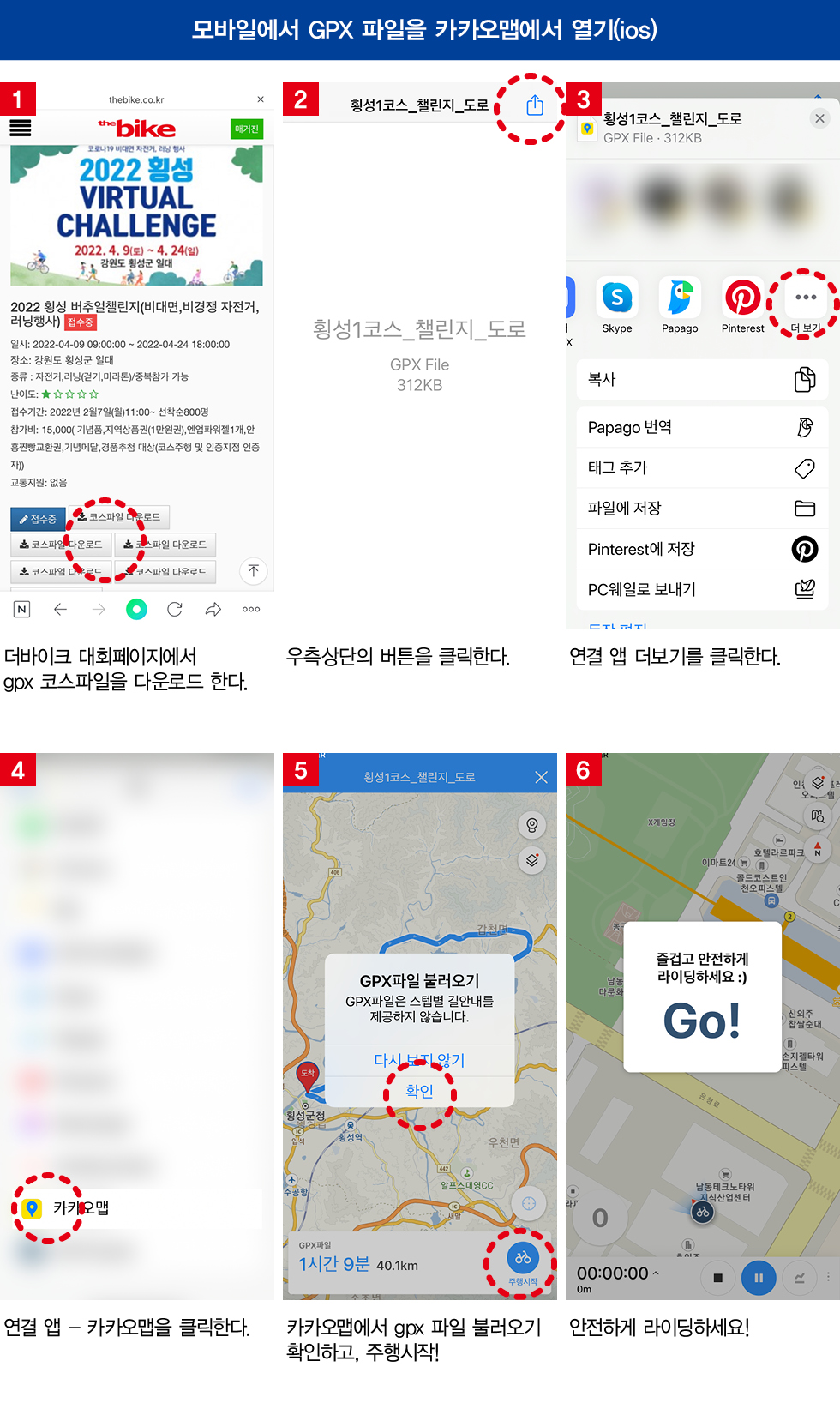 사용한 어플의 코스 주행화면을 캡쳐한 사진과 인증지점에서 촬영한 인증샷을 함께 더바이크 홈페이지(www.thebike) 인증사진 올리기 페이지에 올려주세요.