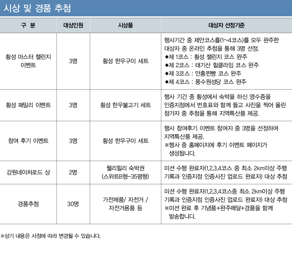 장소: 강원도 횡성군 일대종류 : 자전거,러닝(걷기,마라톤)/중복참가 가능