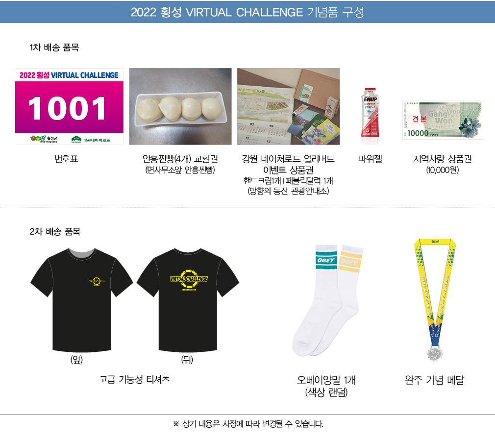 참가 신청자 에게는 행사전 주소지로 번호표,지역상품권(1만원권),파워젤,안흥찐빵교환권이 발송되며,행사 종료 후 미션 완료자(행사 참가자)를 대상으로 기념품, 기념메달,경품 및 이벤트 상품을 배송해 드립니다.2021년에 큰 호응을 얻었던 행사 입니다. 많은 참여를 부탁 드립니다.