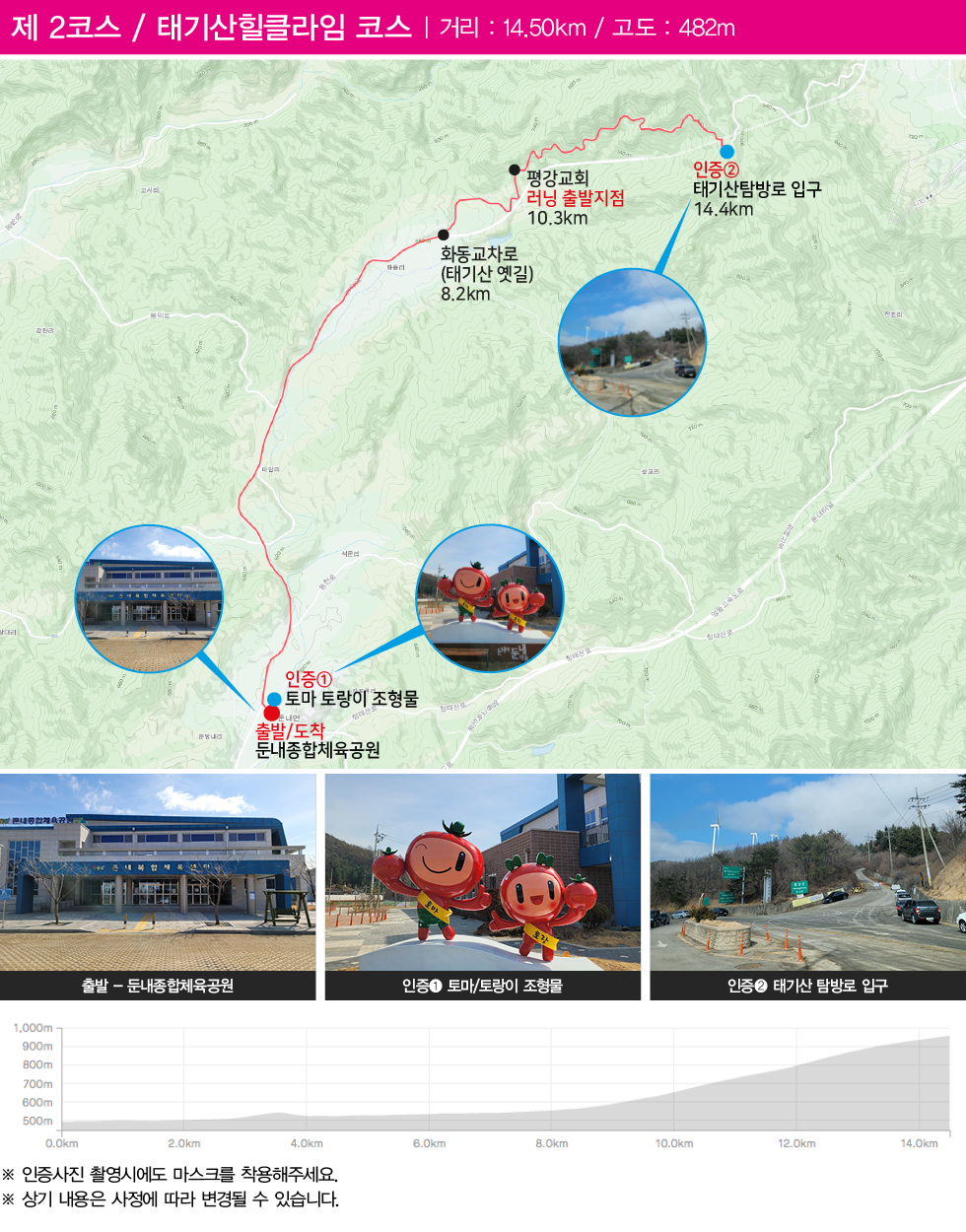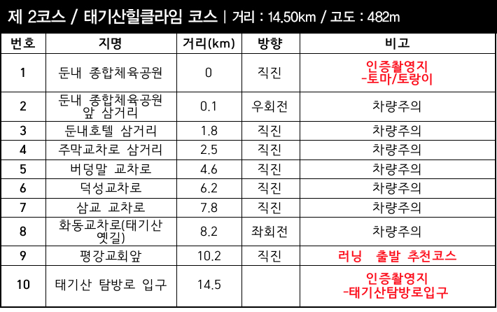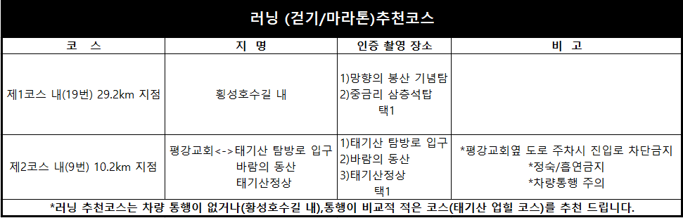 제2코스:태기산 힐클라임코스- 둔내종합체육공원(체육공원 화장실 이용가능)