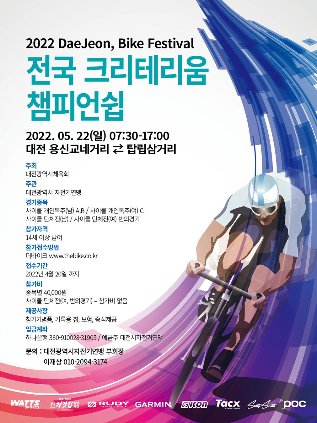 ② 대회중 발생되는 자전거 또는 부품 파손으로 인한 손해는 참가자 본인이 모든 비용을 부담해야 합니다.