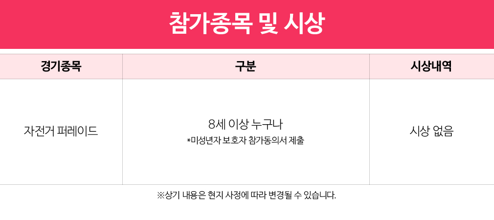 2)행사중 발생되는 자전거 또는 부품 파손으로 인한 손해는 참가자 본인이 모든 비용을 부담해야 합니다.
