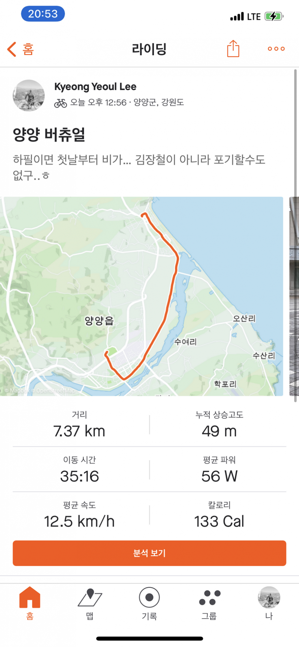 완주했지만 완주하지 않은것 같은 느낌적인 느낌은~?? 원점으로 비맞으며 다시 빽~~~ 차를 두고와서..ㅎㅎㅎ