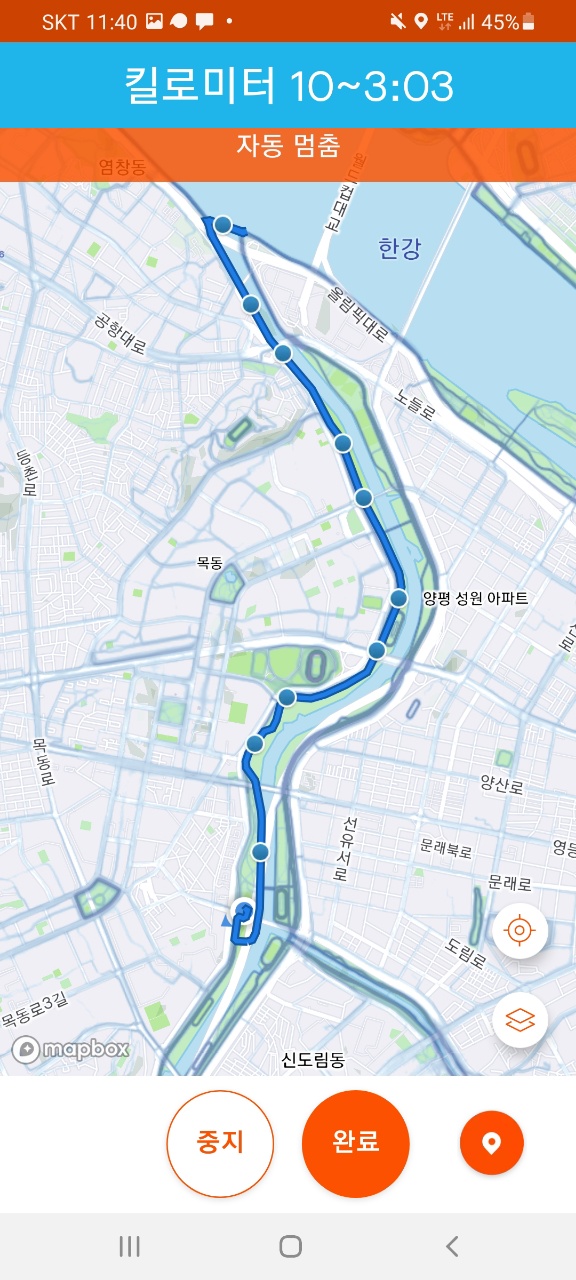 양찬구 신정교에서 안양천 합수부까지 10km를 달렸습니다.