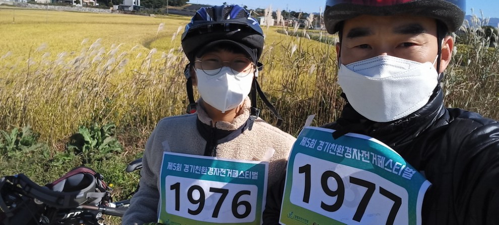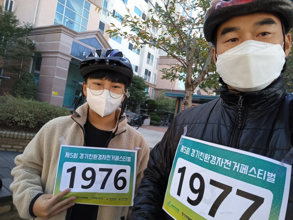 아들과 함께 제5회 경기친환경자전거페스티벌 참가하면서 즐거운 주말보냈습니다. 코로나19로 힘든 시기에 참가할수 있어 감사했습니다. 아빠는 1976년생이고 아들은 참가번호 1976 배정되어 더욱 뜻 깊은 행사 였습니다.