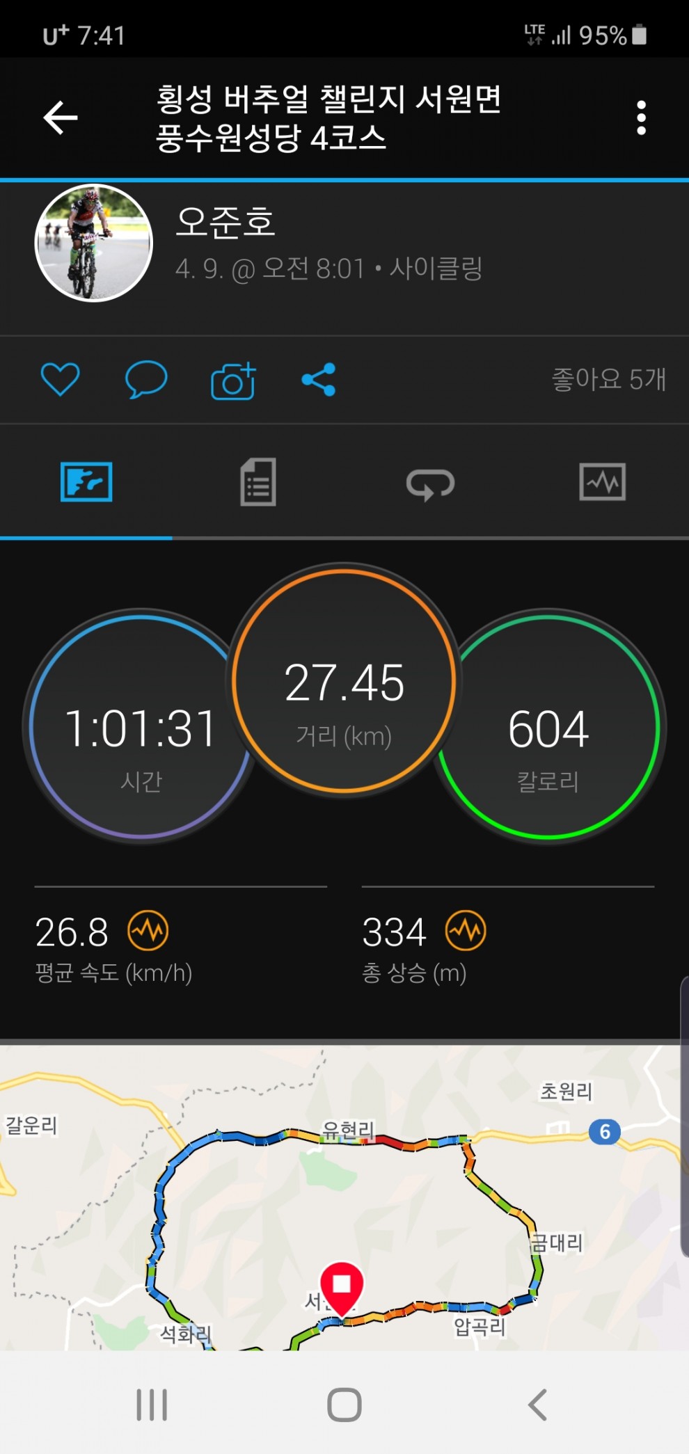 4월9일 횡성 챌린지 1코스 풍수원코스 4코스 완료