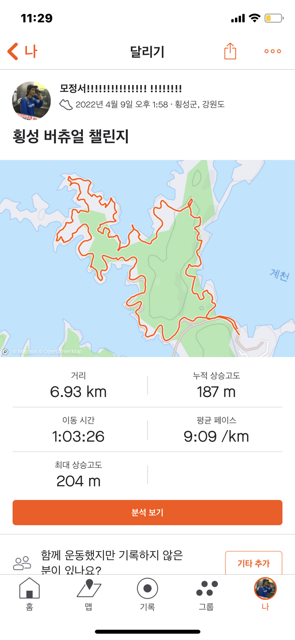 횡성 버추얼 챌린지 러닝으로 참가했습니다! 로드 자전거 대회만 나가보다가, 비대면 러닝 대회를 처음 참여해 봤는데 재미있네요!!