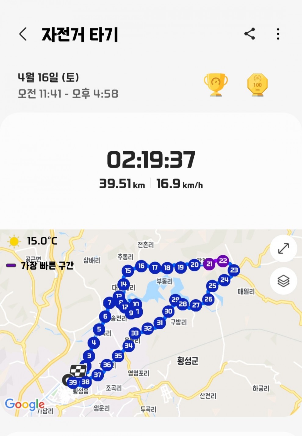 2022횡성버추얼 | 제목 : 패밀리 527, 528 조회수 : 1,314 횡성 버추얼 챌린지 제1코스 완주했습니다~ 강원도는 꽃이 한창이네요!! 더바이크 22-04-25 15:21 참여해주셔서 감사드립니다. 웰리힐리숙박인증도 확인했습니다.~^^ 참여해주셔서 감사드립니다. 웰리힐리숙박인증도 확인했습니다.~^^