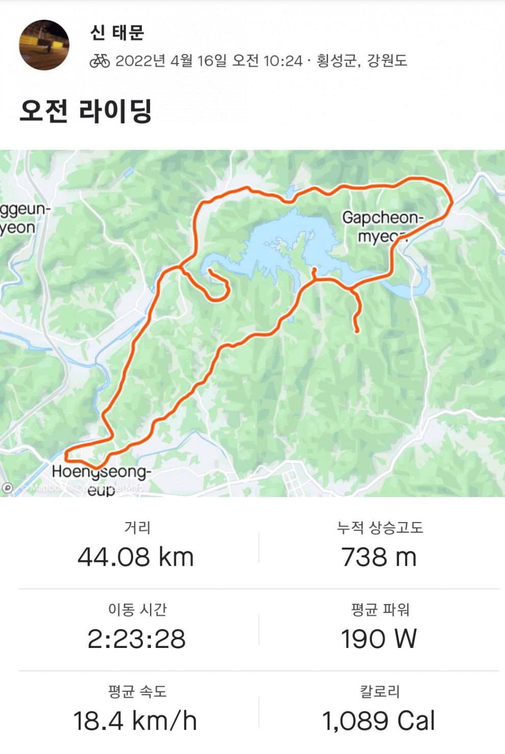 04월16일(토) 회사 동호회 형님들과 즐거운 횡성 라이딩을 안전하고 즐겁게 종료 하였습니다.