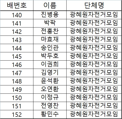 풀코스를 돈 참가번호는 146,150,151,152입니다.