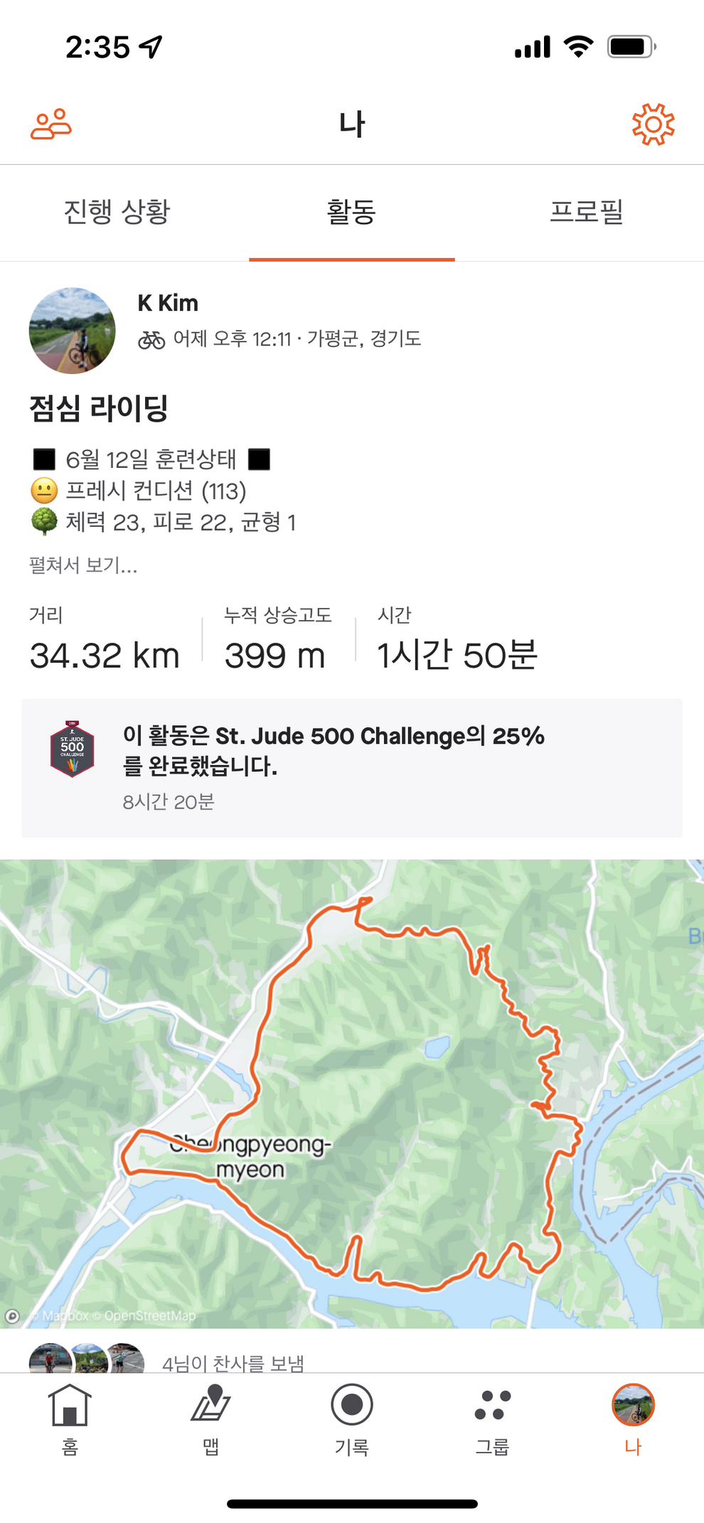제2회힐링청평버추얼챌린지 | 제목 : 441 조회수 : 2,678 혼자서 설레는 맘으로 참가했다가 호명산에 좌절하고 왔네요 ㅠㅠ 그래도 너무 즐거운 라이딩이었습니다~ 등록된 댓글이 없습니다.