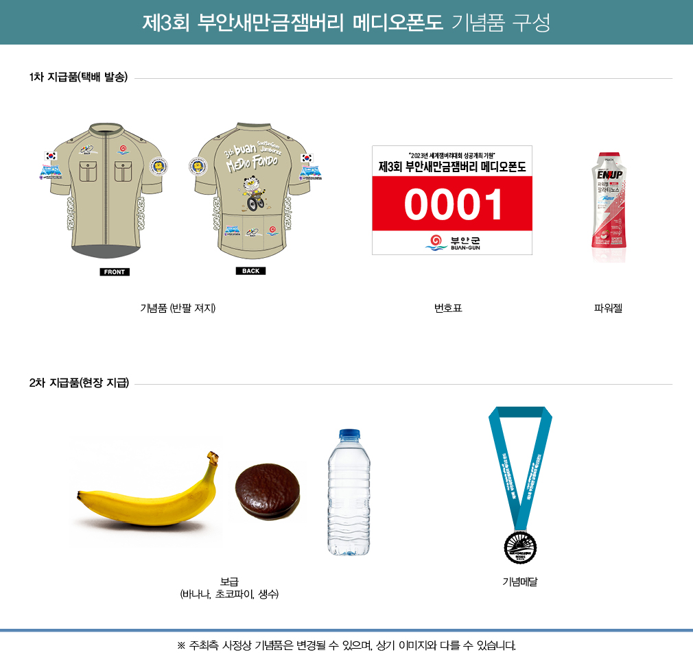 -보급품 수령방법 : 각 보급소에서 배번을 부착한 모든 참가자에게 지급.