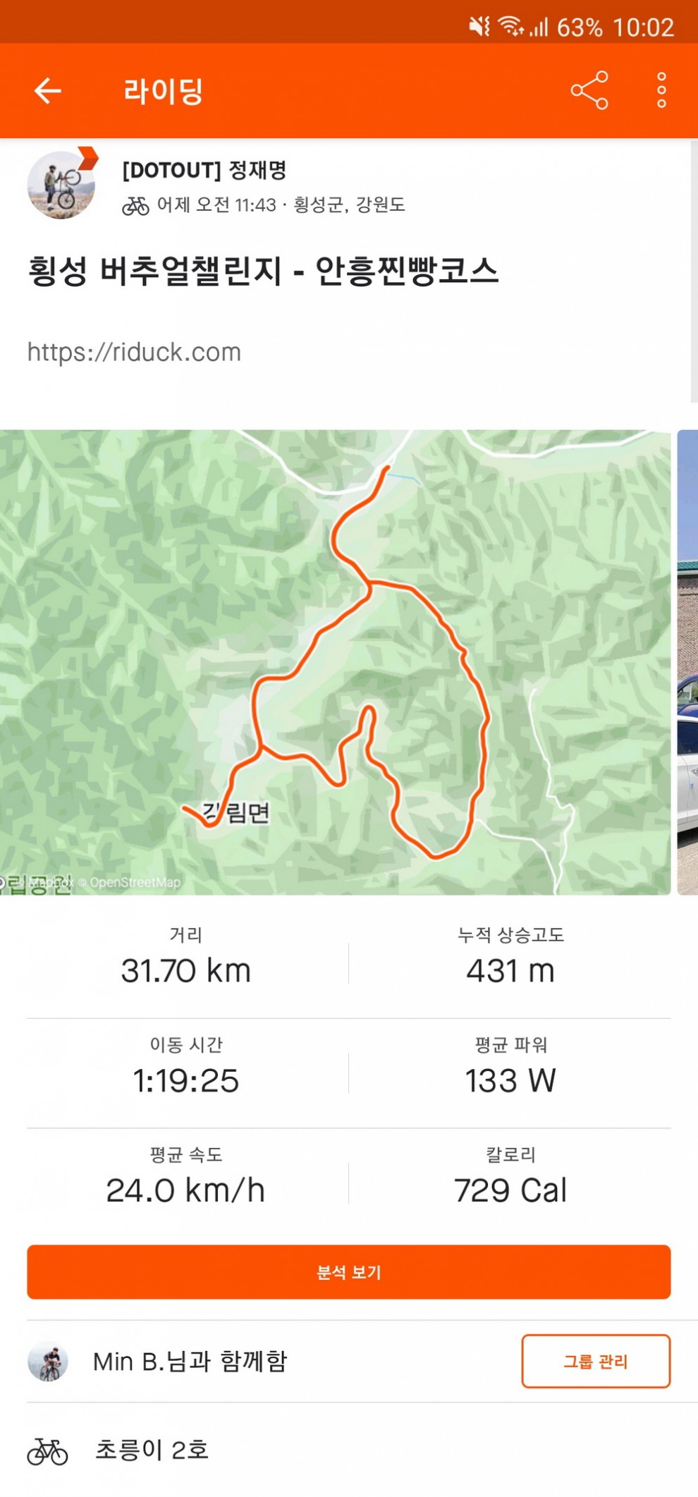 횡성 버추얼챌린지 3번 안흥찐빵코스 인증입니다.