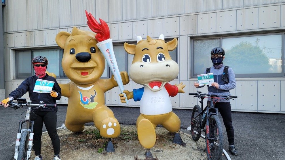 코스파일 다운받기의 제1코스 relive영상과 그아래 사진을 보면 횡성종합운동장동상인증촬영으로 되어 있어 그 앞에서 인증사진을 찍고 출발하였는데 중간에 행사안내서와 홈페이지대회 코스에는 제1코스 인증1 사진이 횡성한우동상으로 되어 있어 첫번째 인증사진을 잘못한 것 같아 코스 종료후 종합운동장 근처에서 사진을 보여주며 여러 사람에 물어 보았으나 대부분 위치를 몰라 한참이나 헤매는 어려움을 겪었네요.