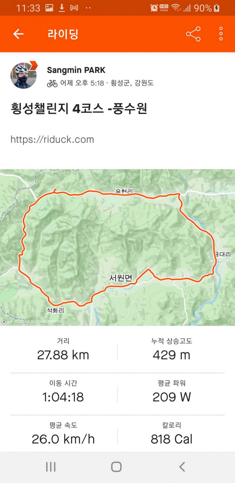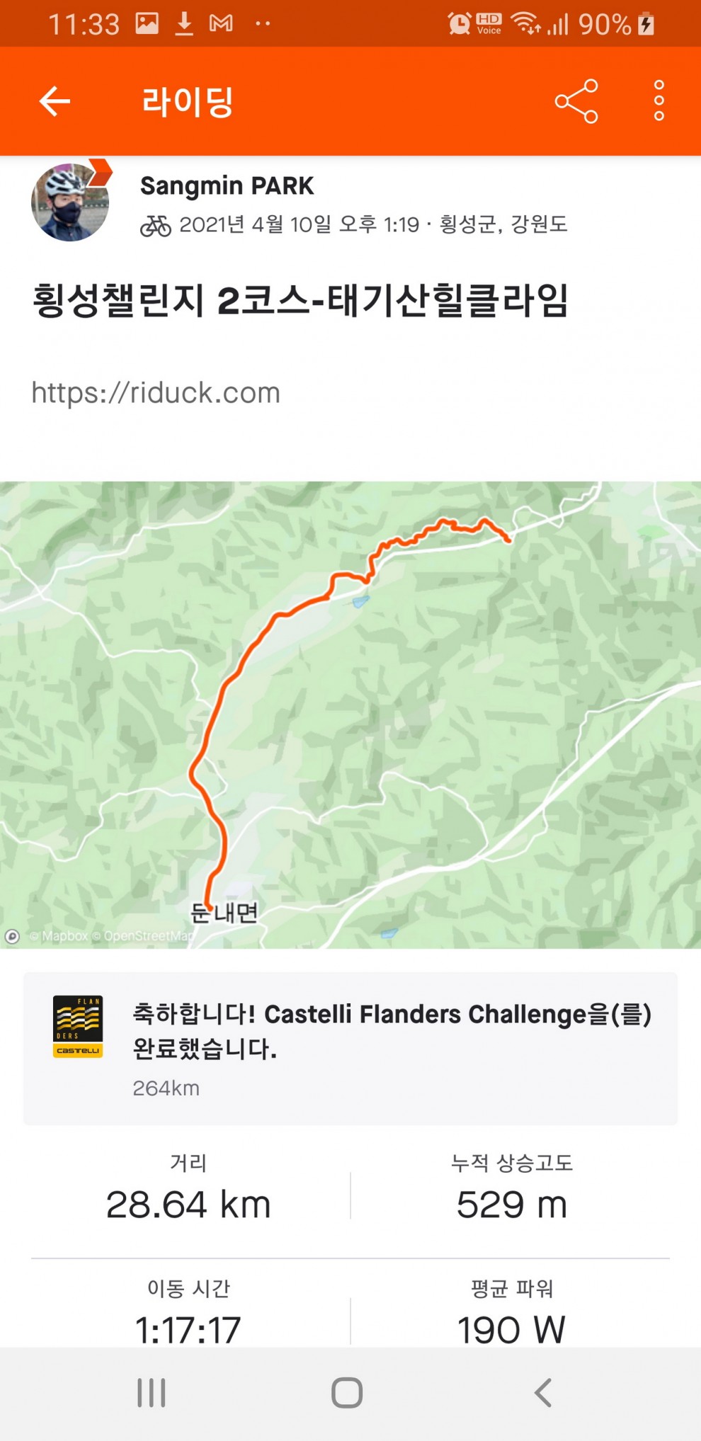 4/10(토)와 4/14(수) 이틀에 걸쳐 횡성마스터 코스 4개 모두 완주 하였습니다.