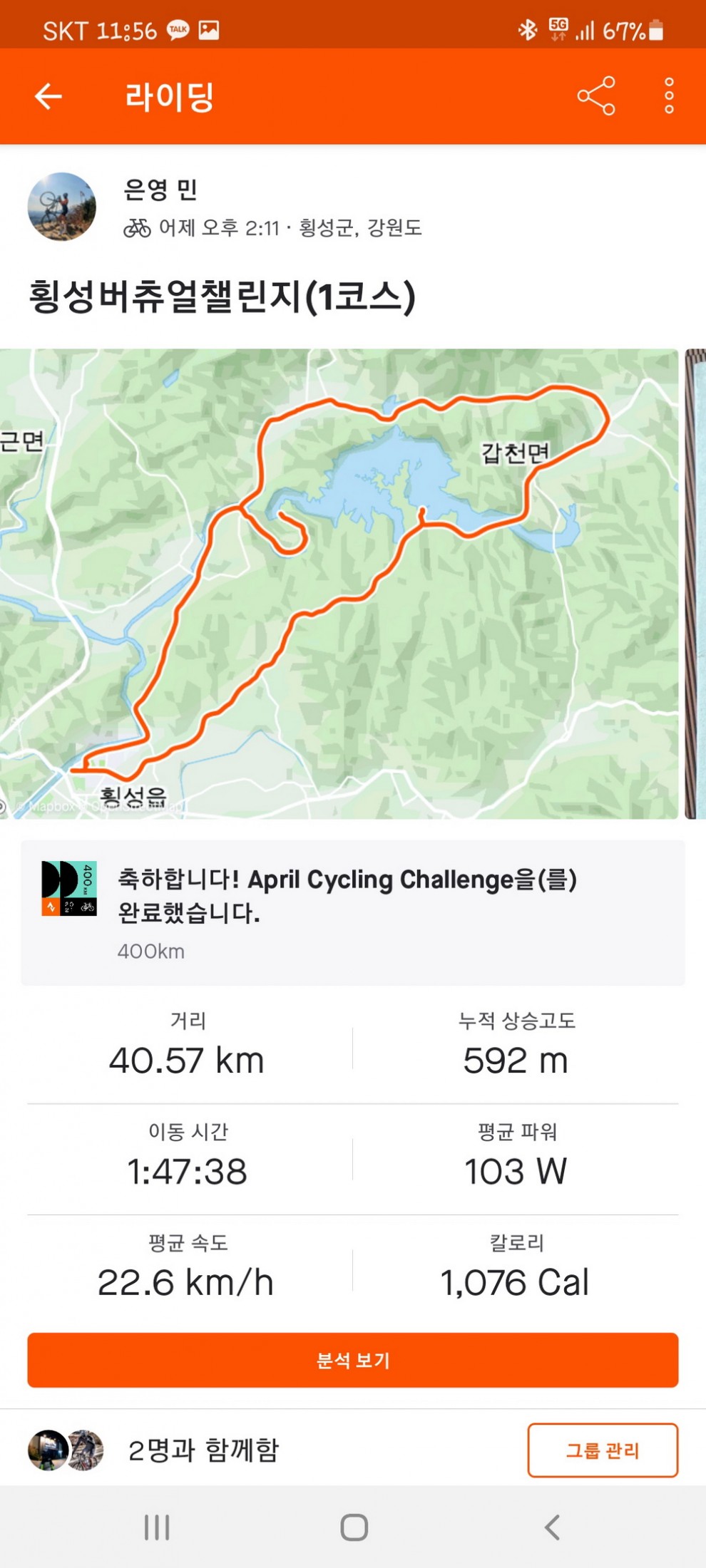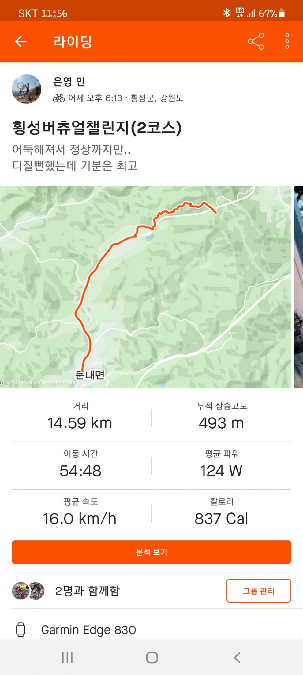 횡성버추얼챌린지 | 제목 : 134 조회수 : 4,520 1코스 맘껏힐링하고 2코스 긴업힐에 레벨업하고 왔어요^^ ("희망"이 있는한 두려워 할 것은 없다) 등록된 댓글이 없습니다.