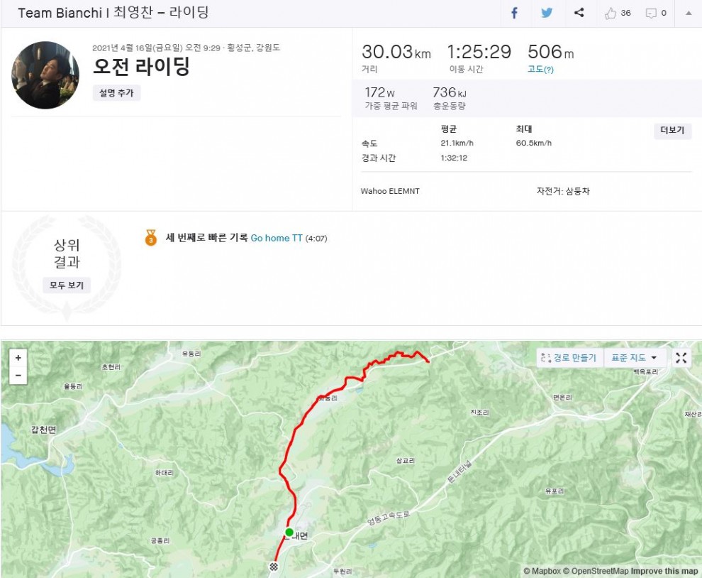 2021 횡성 VIRTUAL CHALLENGE 제2코스 완주하였습니다.~^^^