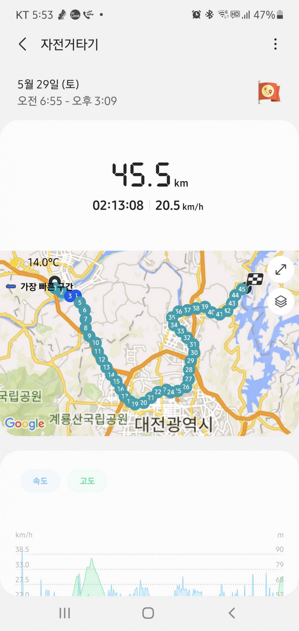 (출발지점,한빛대교,대청댐 반환점)