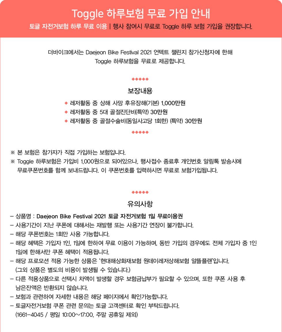 주행 중 사고 발생시 모든 민,형사상 책임은 참가자 본인에게 있으며, 주최 또는 주관사 책임을 물을 수 없습니다.