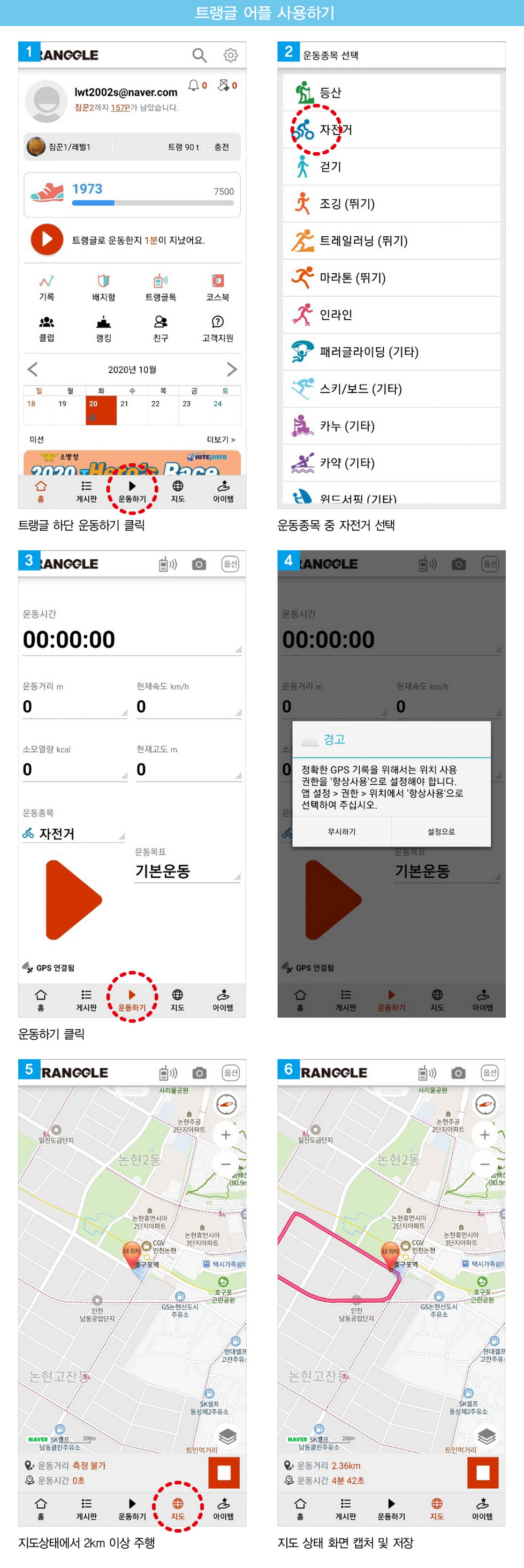 4)GPS어플은 주행 종료시까지 끄지 마시고 주행 종료후 주행 기록(최소 6km주행기록) 저장 또 화면 캡처