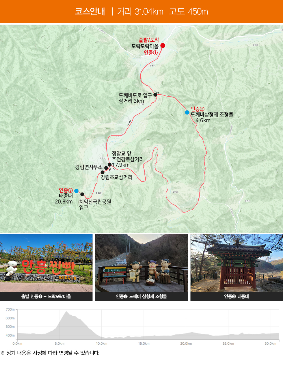 행사 코스는 제안 코스일뿐, 코스 주행 시 위험하다고 판단될 경우 중단하시길 바랍니다.