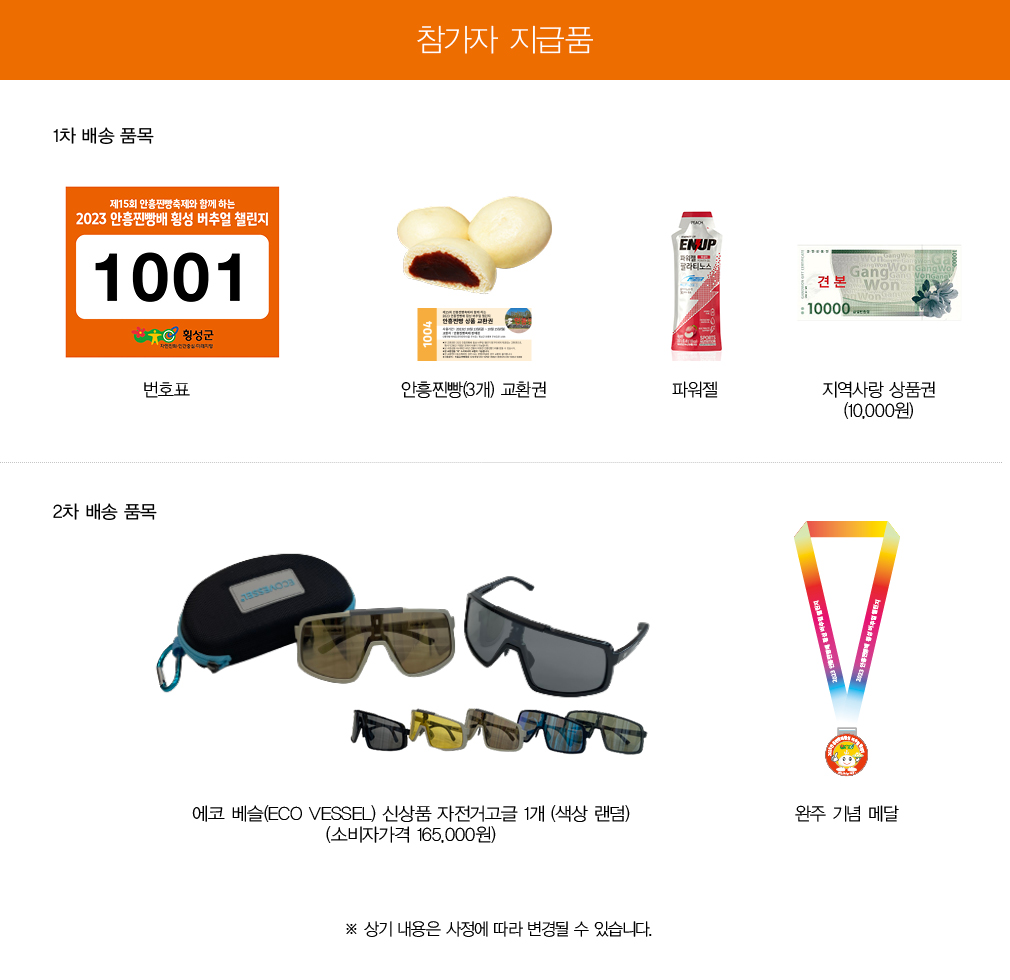 참가자 지급품은 접수하신 주소지로 2차에 나누어 발송합니다.