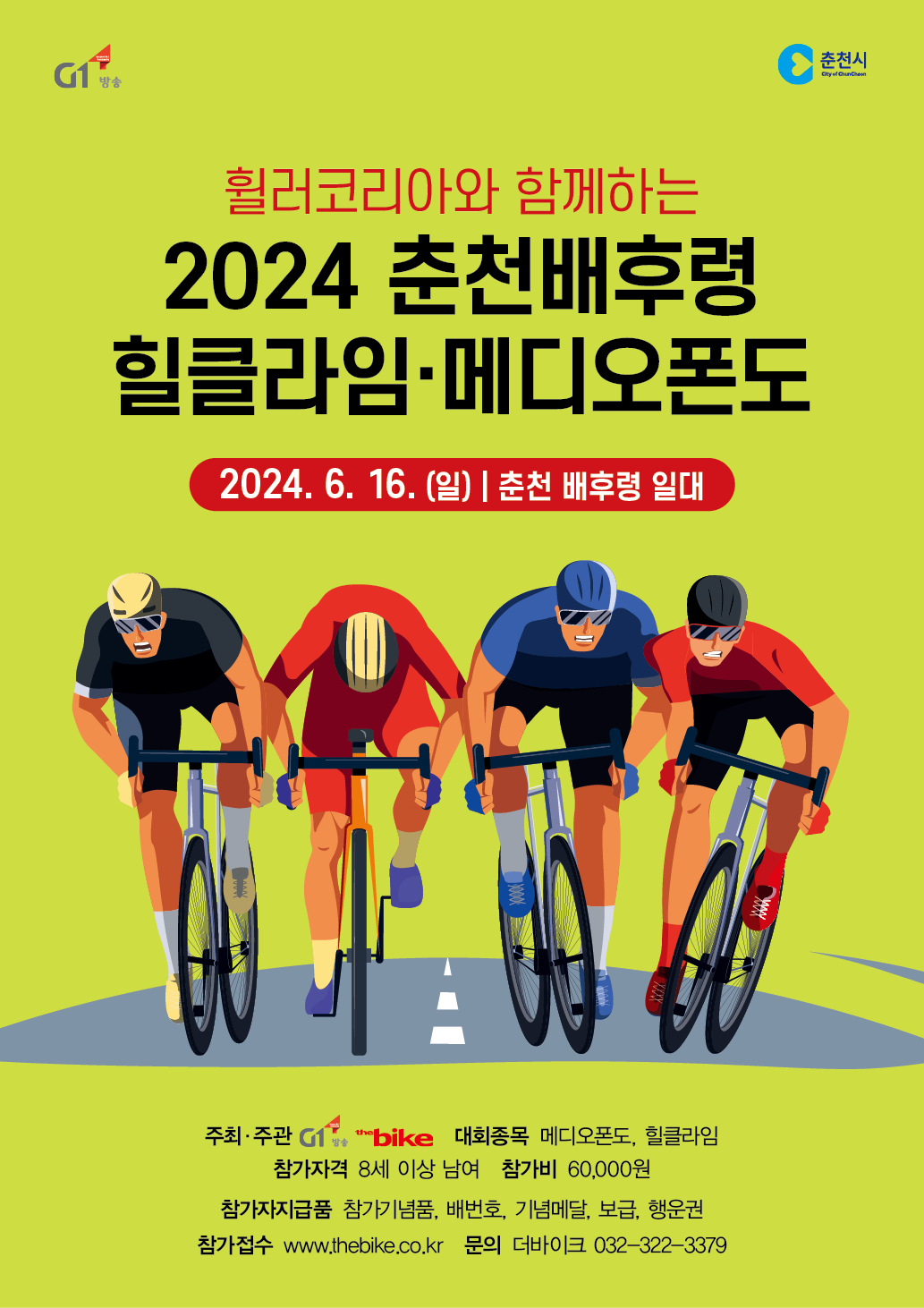 매년 호반의 도시 춘천에서 개최되는 전통의 배후령 힐클라임 대회가 2024년에는 배후령 고개의 자전거 우선도로 선포식을 겸하는 행사로 다채로운 이벤트가 진행됩니다.