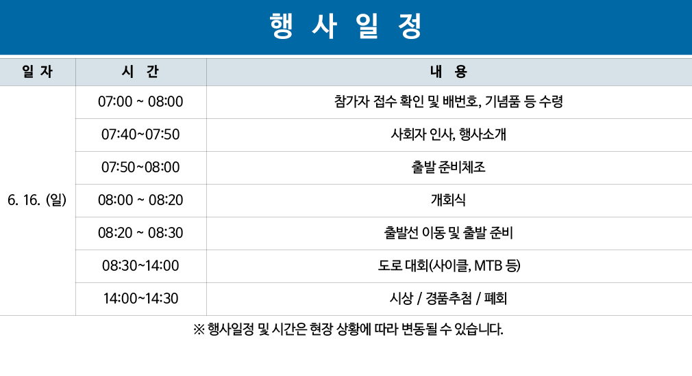 ※ 우천시 및 방한대책은 참가자가 직접 하시길 바랍니다.