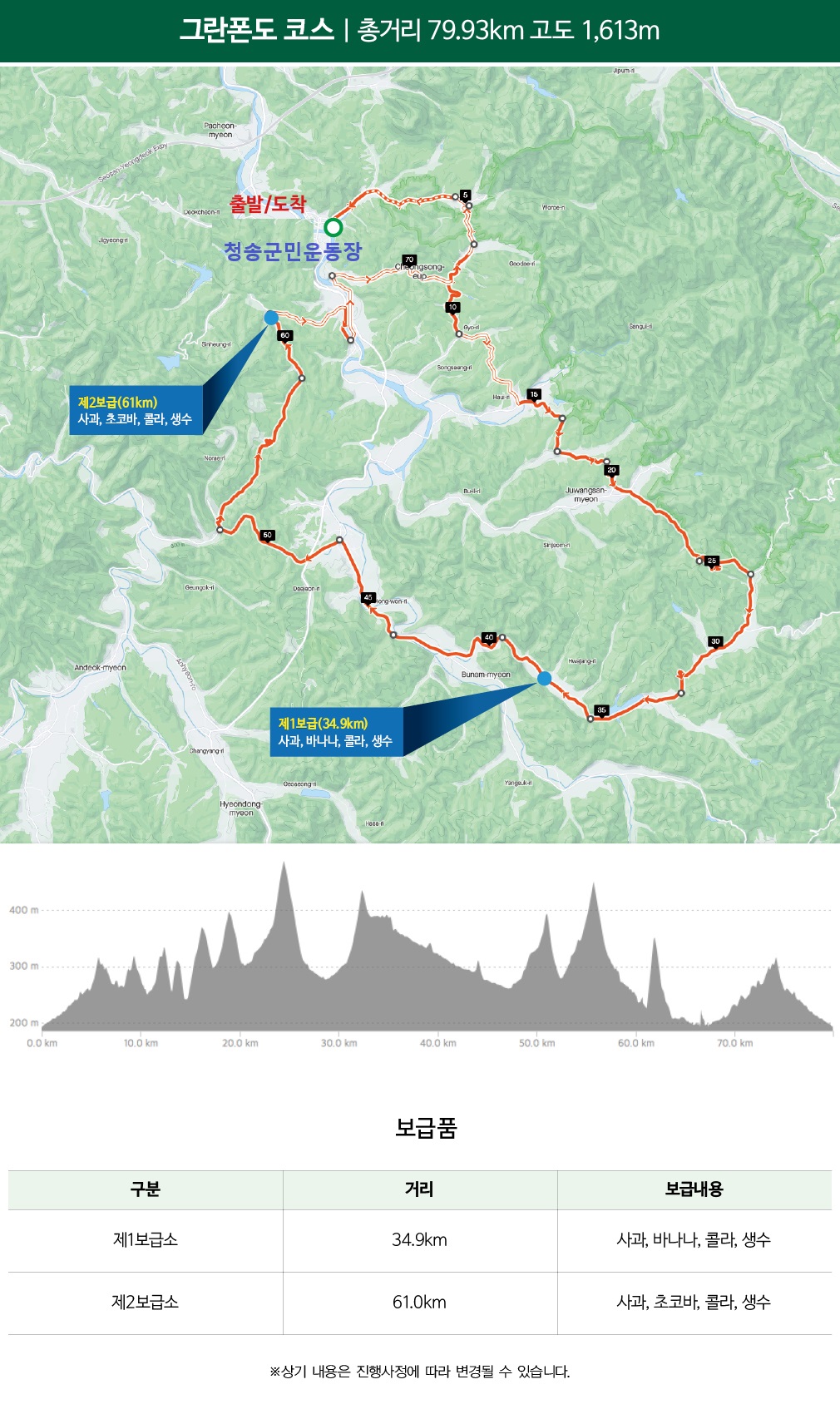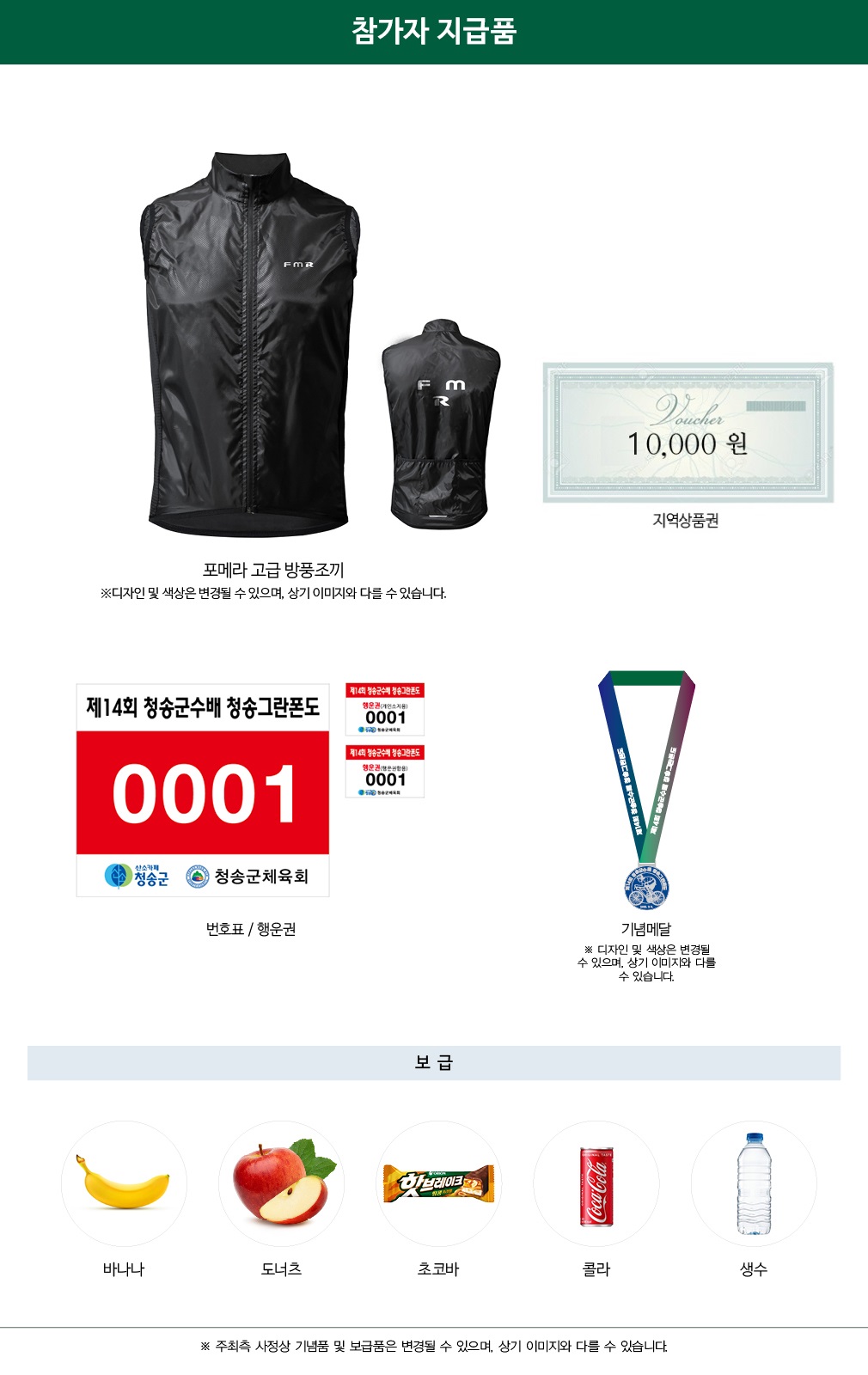 -보급품 수령방법 : 각 보급소에서 배번을 부착한 모든 참가자에게 지급.
