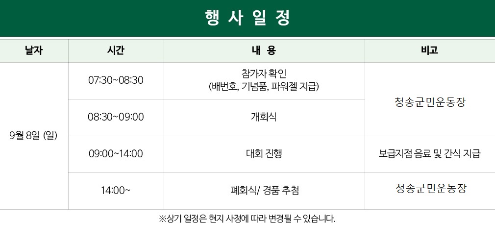 -주최측은 참가자의 안전에 필요하다고 판단 될 경우 참가자의 동의 없이도 코스의 길이 및 경로를 변경 할 수 있다.
