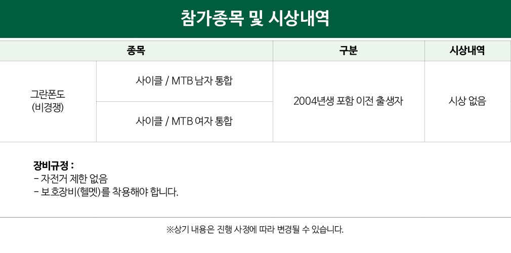 -모든 참가자는 주행 중 반드시 헬멧을 착용 하여야 합니다