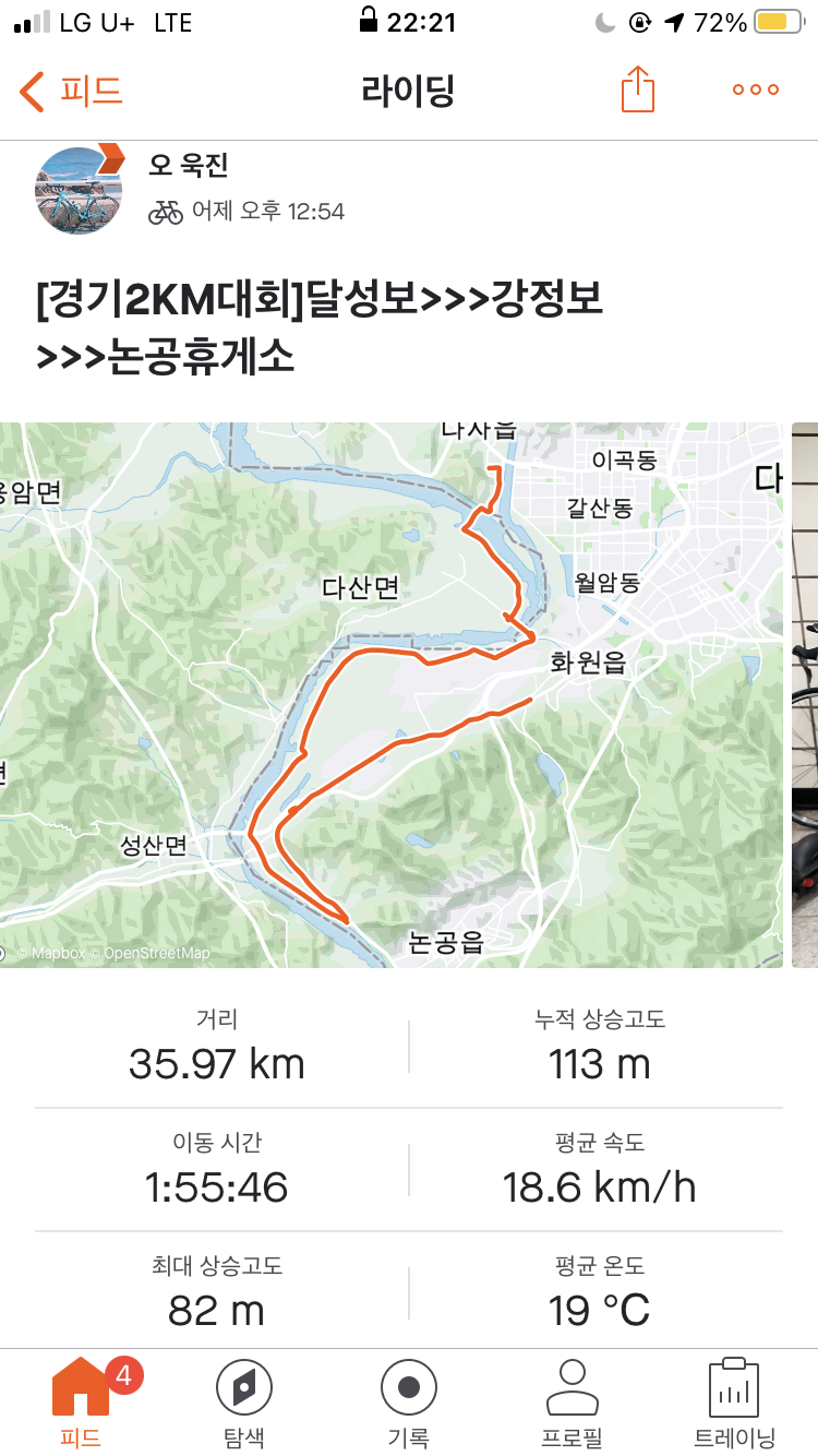 앱 버전 호환이 안되 스트라바 이용하였습니다