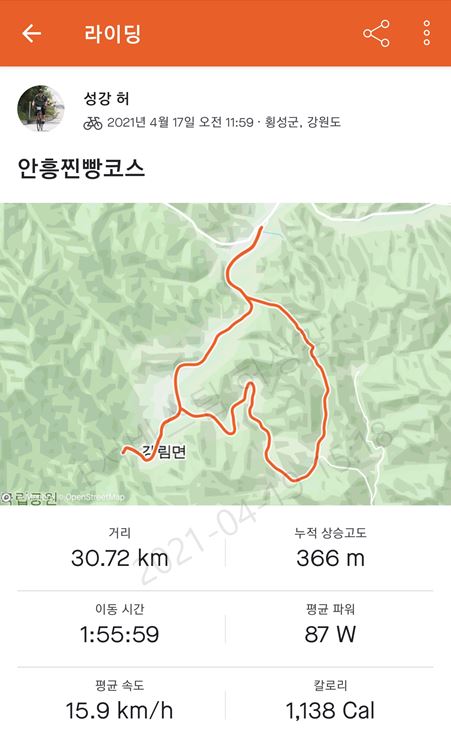 횡성버추얼챌린지 | 제목 : 531, 532, 533 조회수 : 1,188 안흥찐빵코스 인증 (531~533) 업힐을 앞만 보고 올라갔더니, 도깨비도로 인증을 못해서.. 도깨비도로 정상 사진 대체해서 올립니다. 4월 중순인데도 횡성은 춥네요. 등록된 댓글이 없습니다.