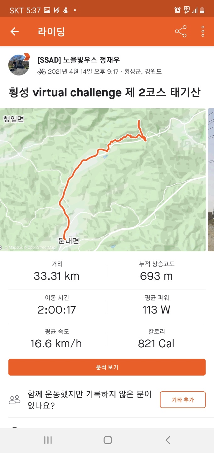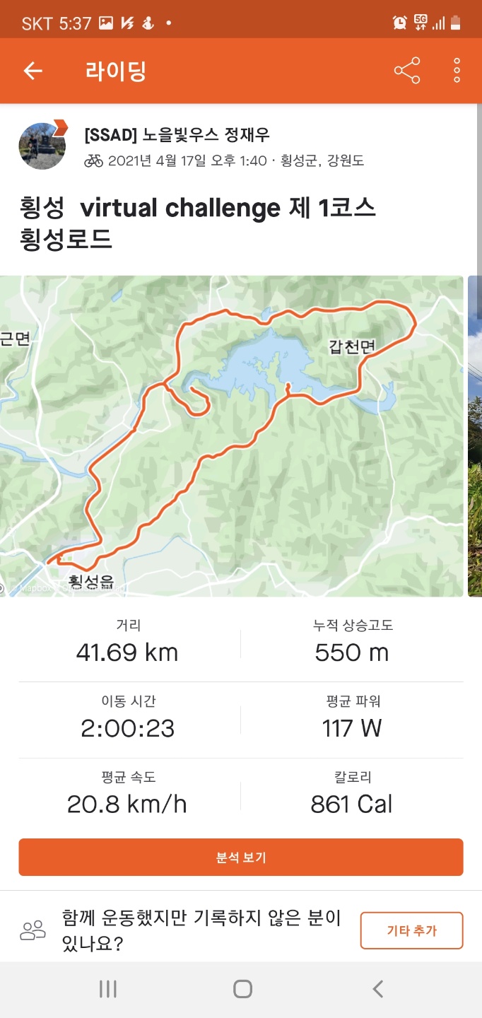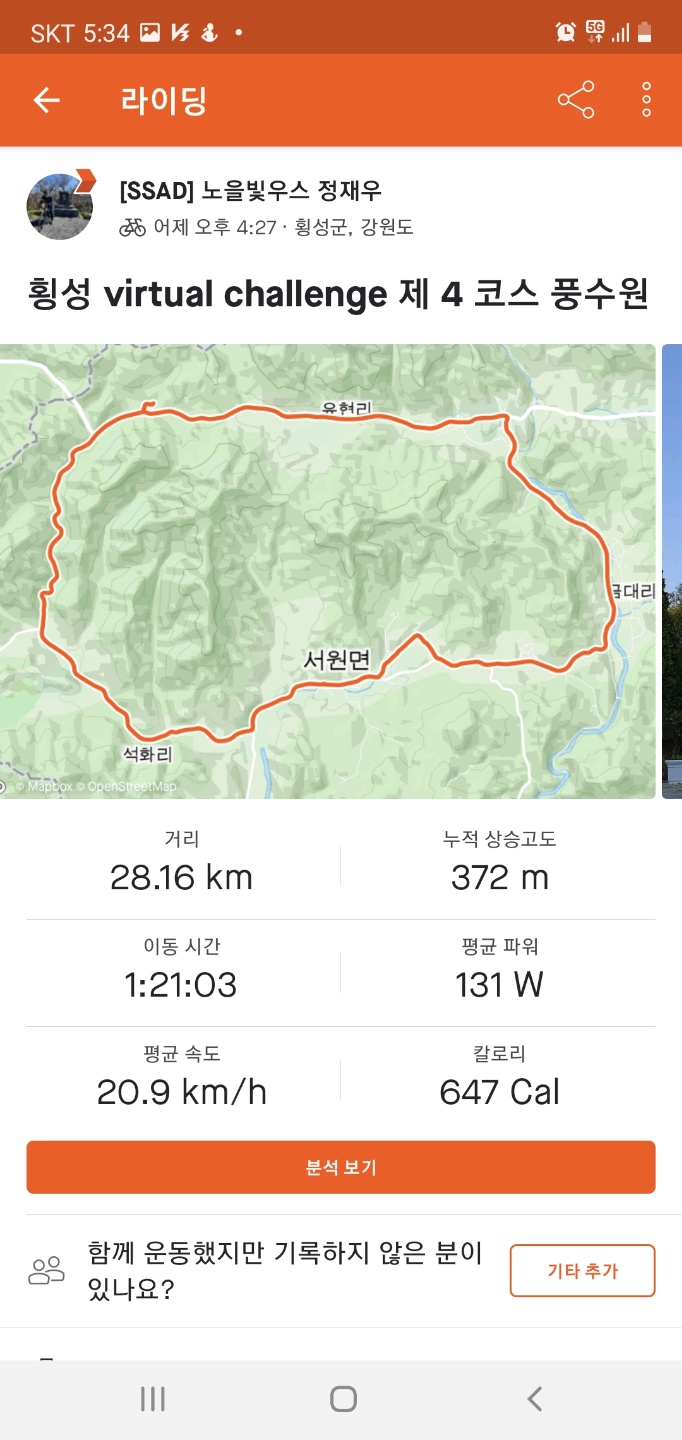 횡성 virtual challenge 제 1코스~ 4코스 전부다 완주하였습니다.