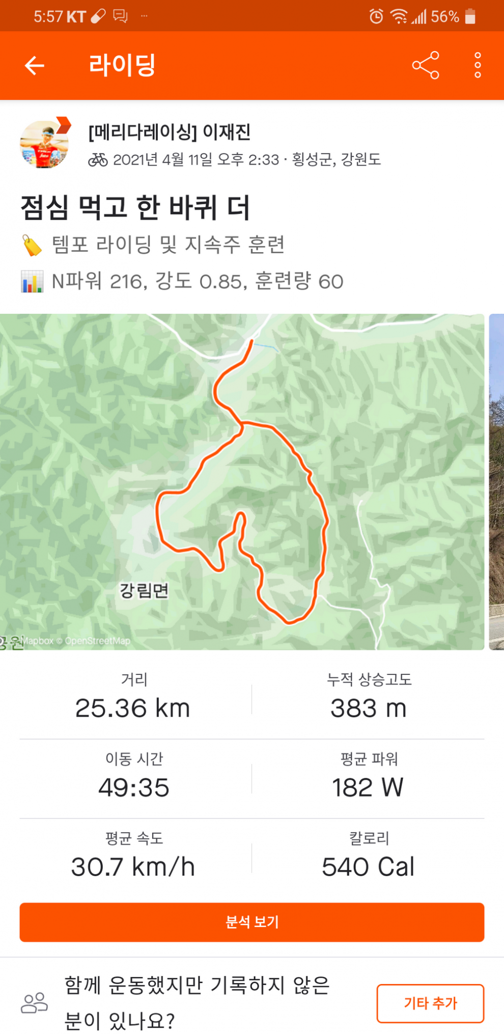 코스가 좋아 점심먹고 한바퀴 더 돌았습니다
