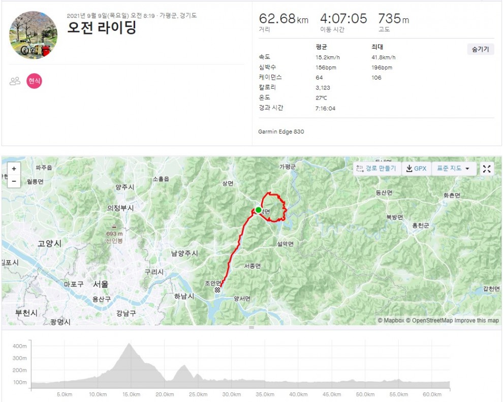 호명산 코스 정말 좋았습니다. 속도계오류인지 호명산둘래 로그가 사라져서 같이간 동료의 스트라바 기록도 함께 올립니다.
