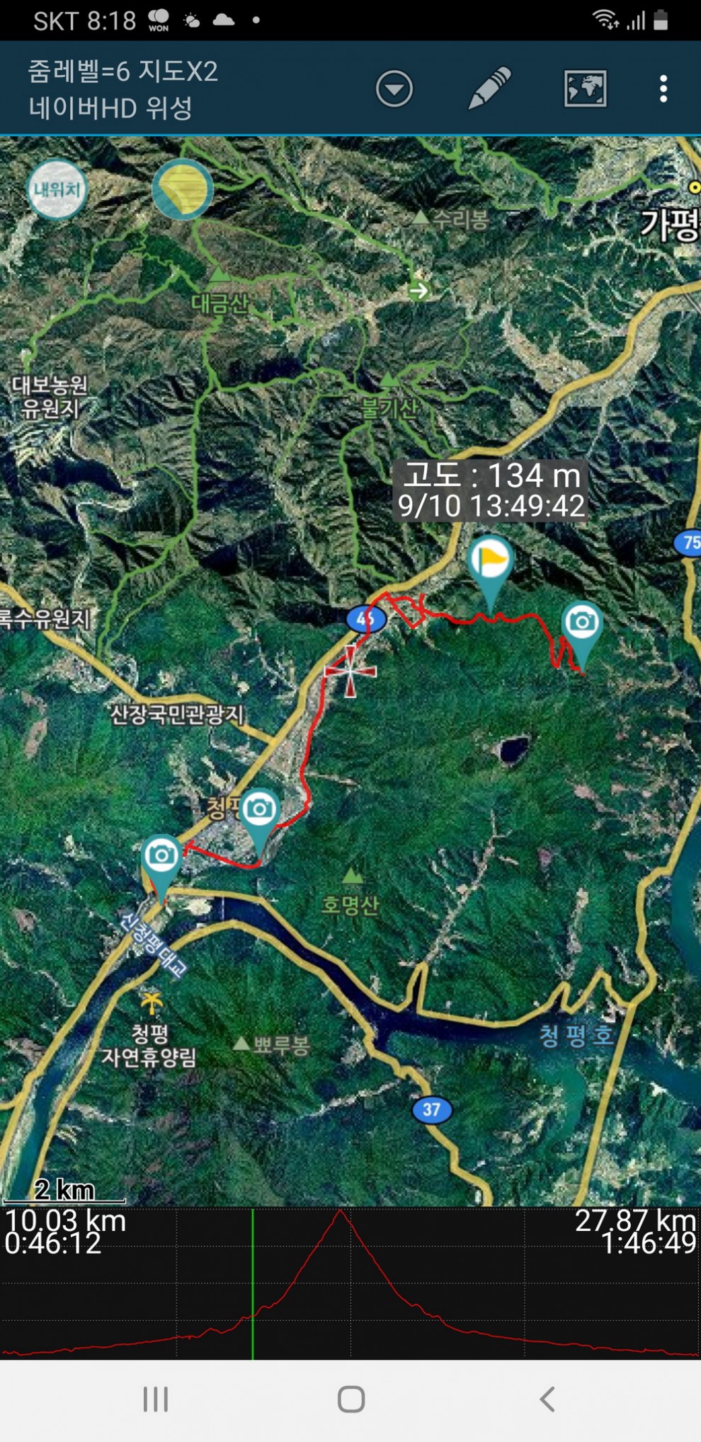 힐링 청평 ~~. . 성남에서 출발150키로 대장정. 속도계 전원이 나가서 ... 산길샘으로 겨우대체..