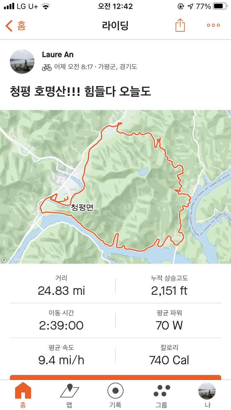 힐링청평버추얼챌린지!! 호명산 2코스 하 힘들었습네당...