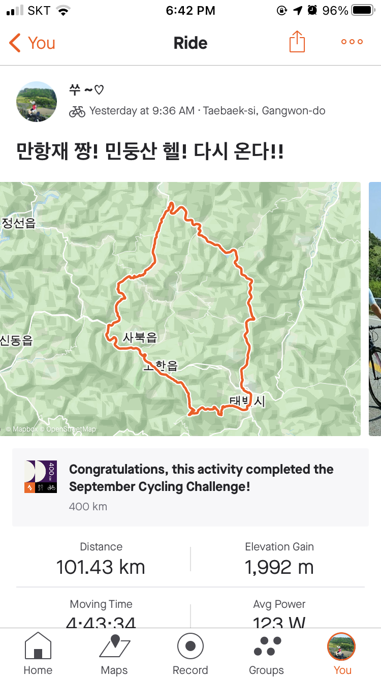 태백버추얼챌린지 인증사진입다