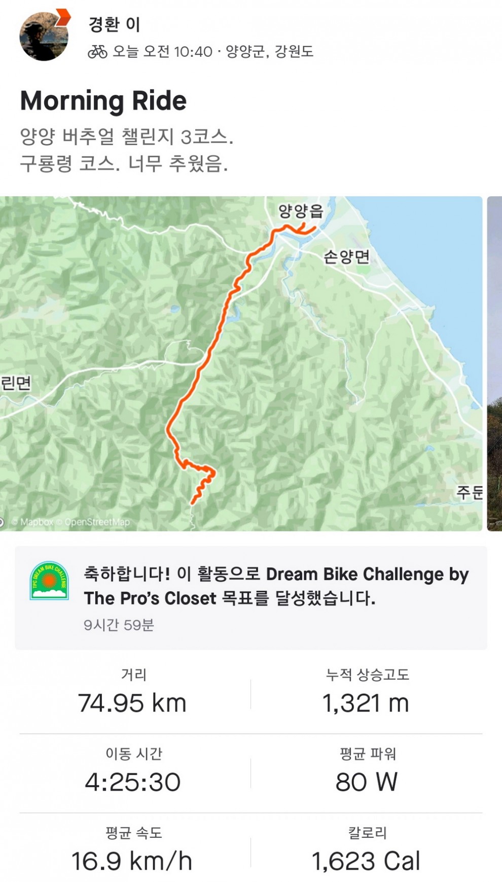 챌린지 3코스. 구룡령 코스 인증합니다.