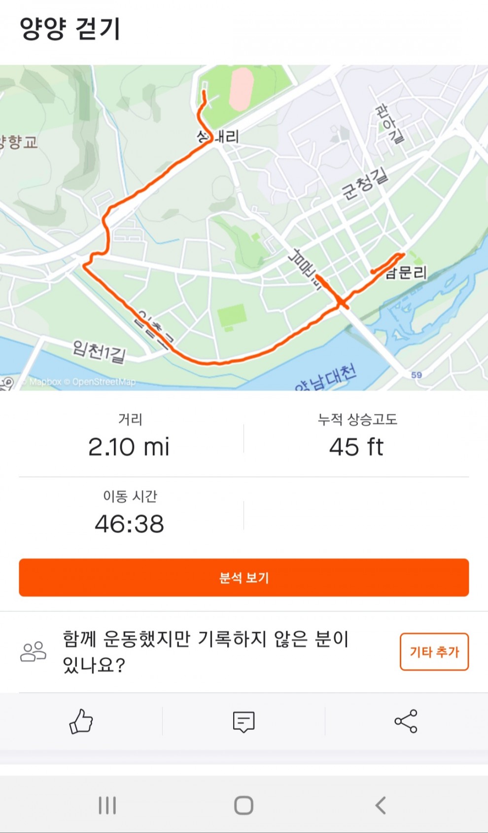 양양 1코스 걷기 2Km 조금 넘은 구간 건너편에 시장이 있더라구요..^^;; 시장구경 후에 다시 걷고 완주했는데 어플 일시적 오류로