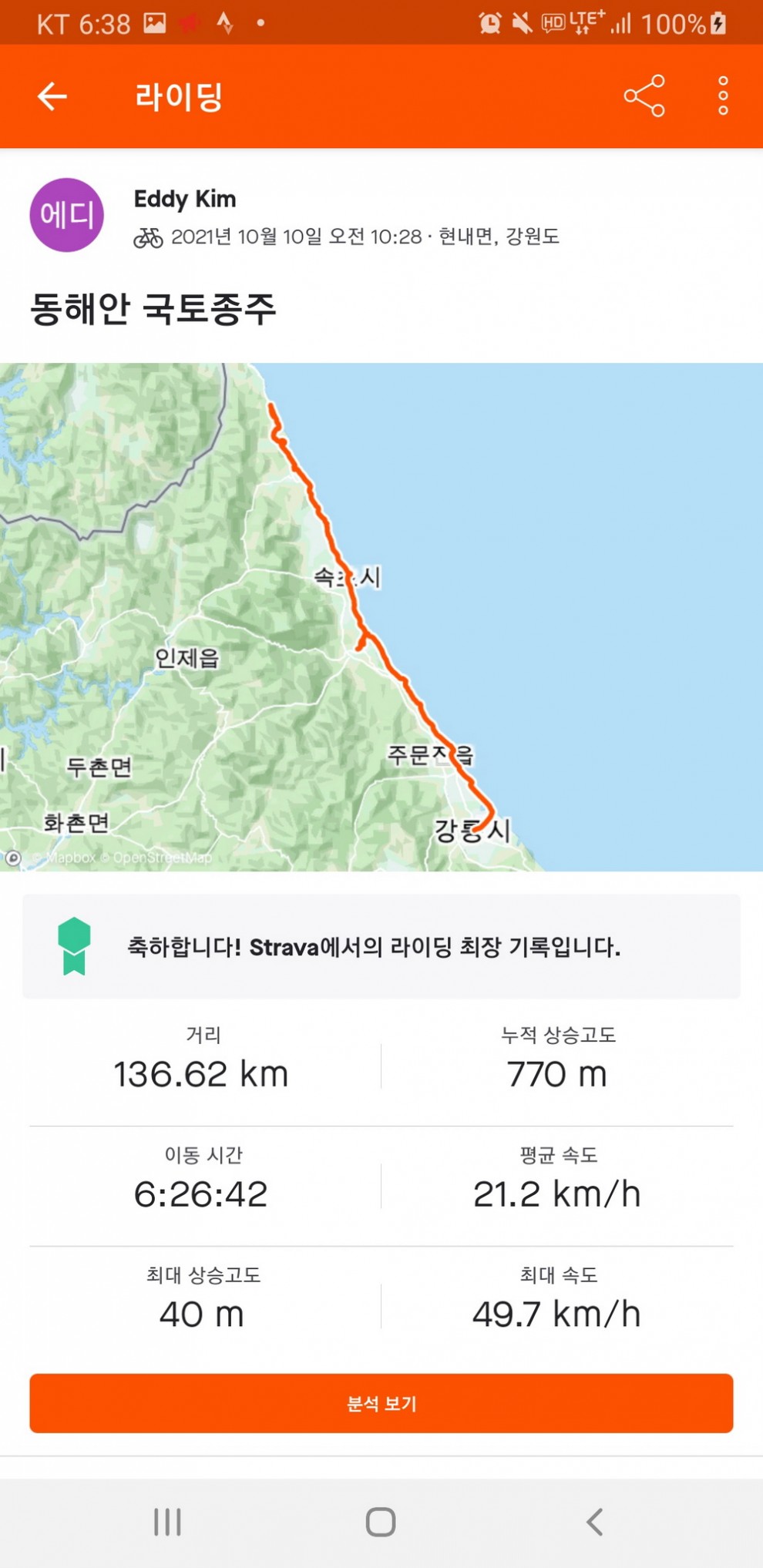 양양버추얼챌린지 | 제목 : 832 조회수 : 1,170 고성통일전망대에서 경포해변까지 동해안국토종주 도중에 양양종합관광안내소와 양양종합운동장을 경유하면서 즐겁게 라이딩 했네요^^ 등록된 댓글이 없습니다.