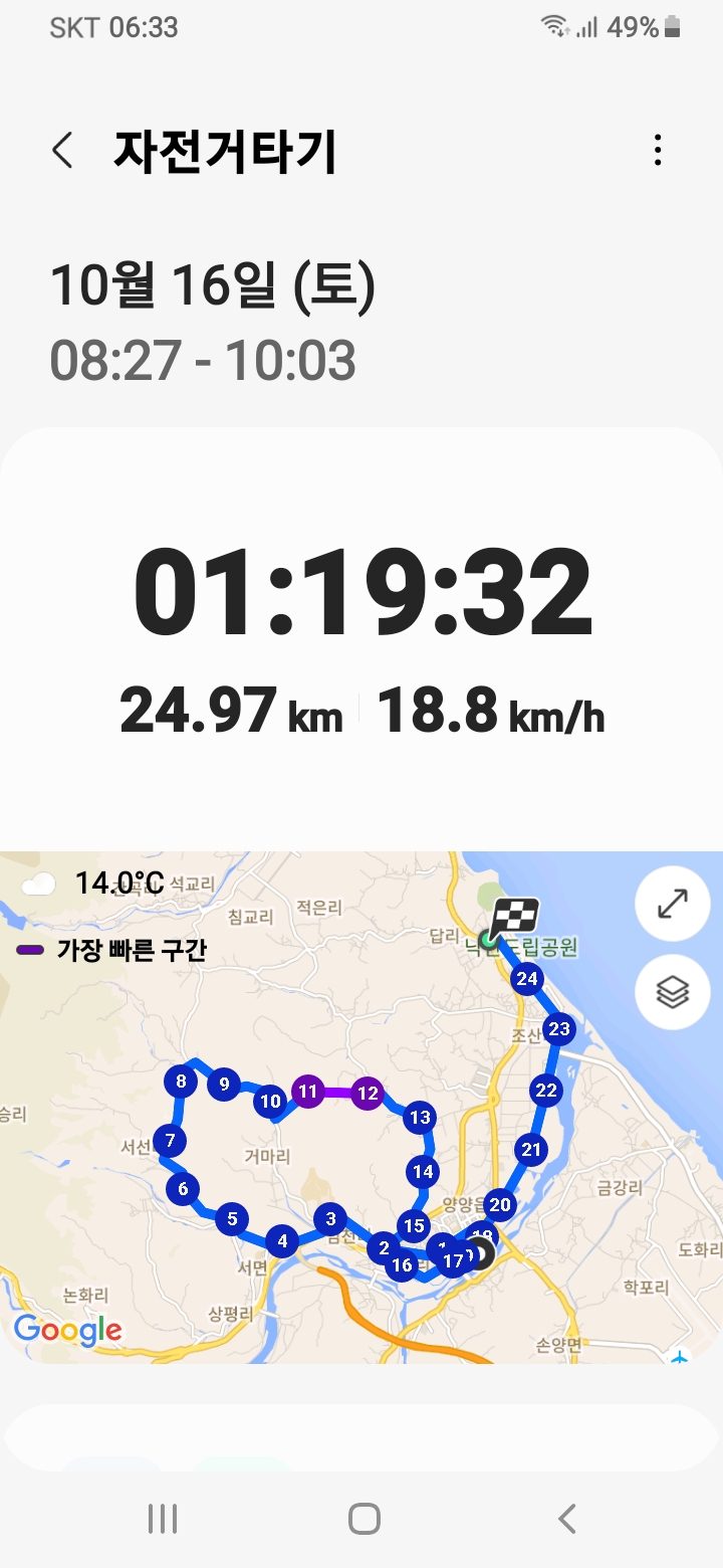 양양버추얼챌린지 | 제목 : 패밀리 97, 98, 99 조회수 : 1,379 10월 15일에 비가와서 조침령, 구룡령, 낙산사를 10월 16일 오전까지 주행하였습니다. 등록된 댓글이 없습니다.