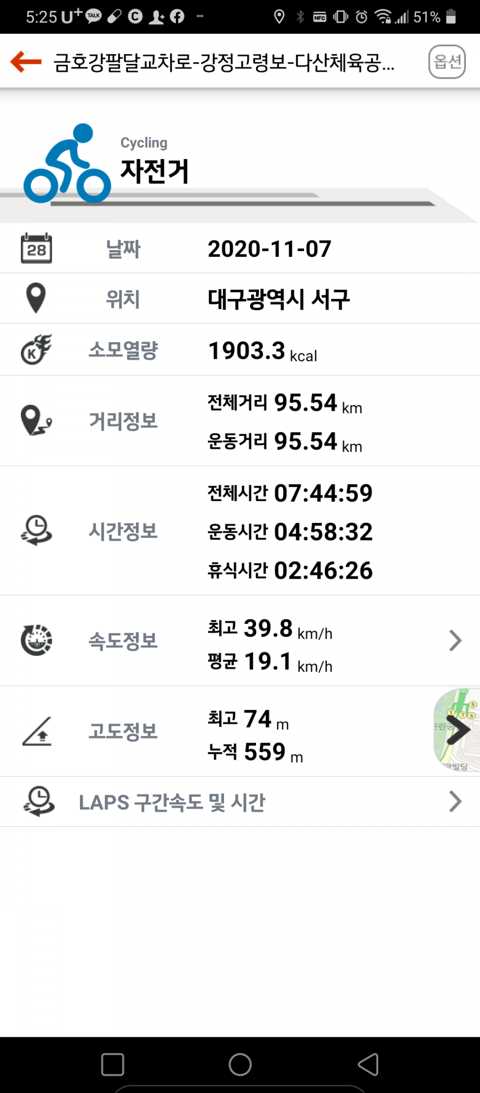 대구 서구 팔달교→고령강정보→달성보→고령강정보→대구 서구 팔달교