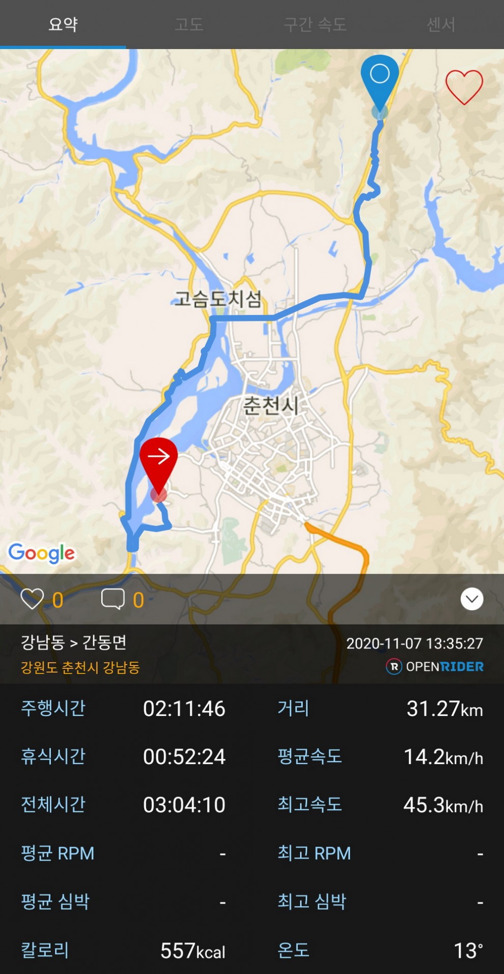 비경쟁부문 춘천 배후령 버츄얼 레이스 완료했습니다!!