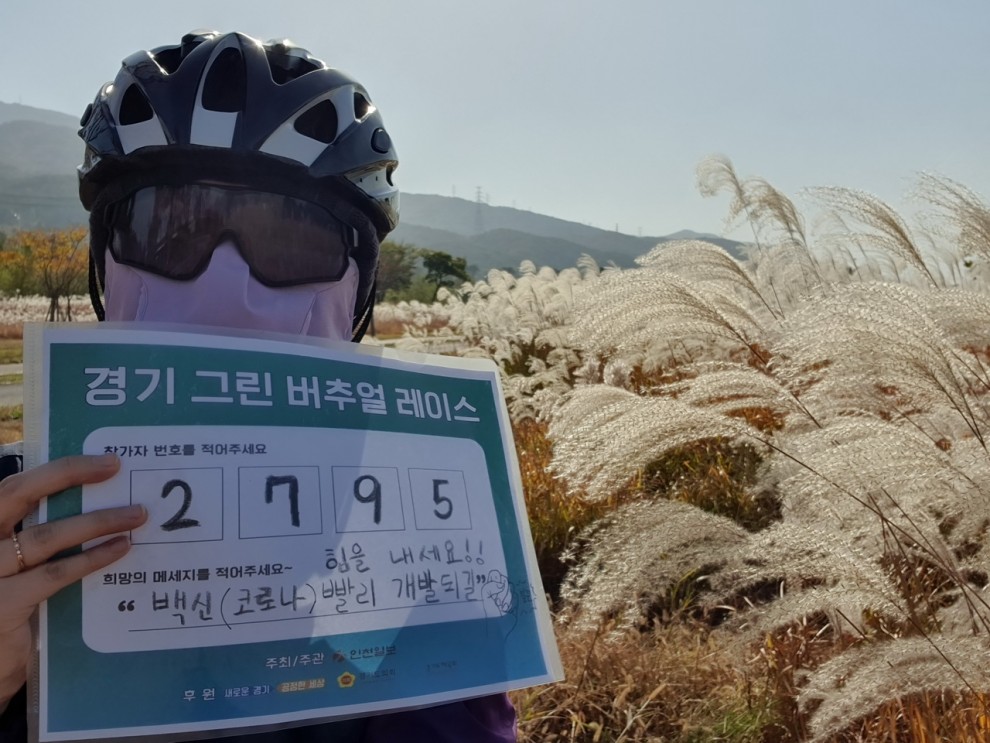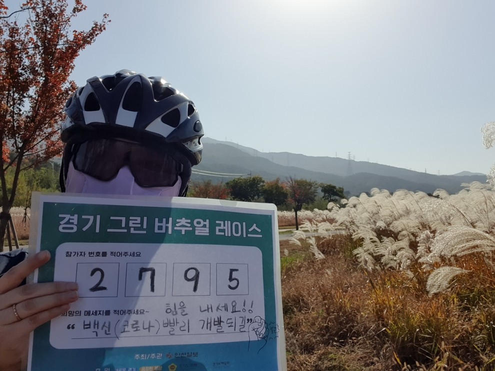 자전거 운동을 여름에 시작하면서, 이런 자건거 경기참여는 처음입니다. 초보자전거에게는 뜻깊은 참여이고, 코로나가 하루 빨리 극복이 되었으면 합니다. 매일 자전거를 달리면서 경치가 이쁜 곳에서 한곳 인증사진을 찍었습니다. 이런 행사를 열어주셔서 감사합니다 ^^