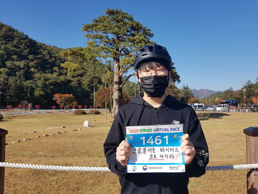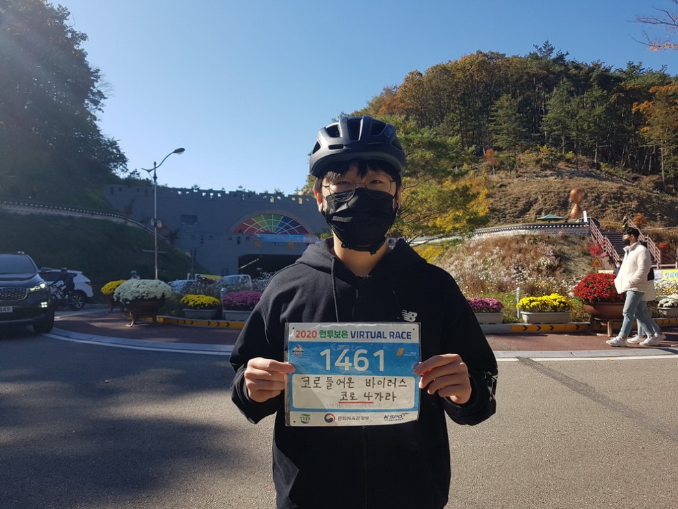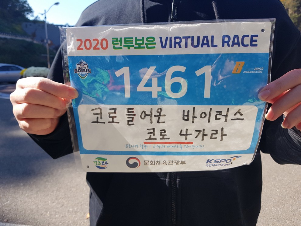 날씨도 좋고 재밌는 하루였어요. 메시지 : "코로 들어온 바이러스, 코로 나 가라"