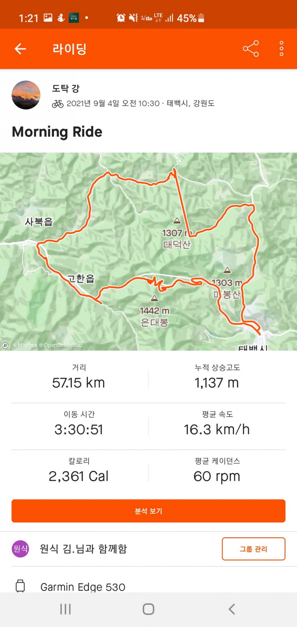 1.3코스 주행중 스트라바 오류났네요.